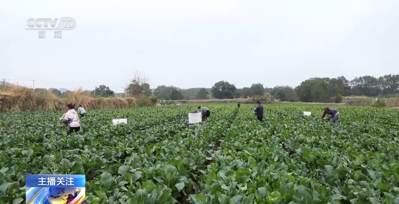 在江蘇淮安梅暢村的水芹種植基地,上百畝水芹鬱鬱葱葱。為了保證冬季市場的供應,當地提前採購保暖設備、增加採收工人數量,並積極與商超、蔬菜市場保持緊密聯繫,確保採收好的水芹能夠第一時間從基地源頭直供市場銷售,保障“菜籃子”供應充足。