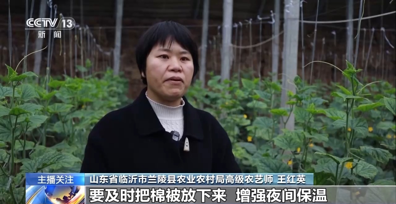 山東省臨沂市蘭陵縣農業農村局高級農藝師 王紅英:在温度低於0℃的時候,要及時地把棉被放下來,增強夜間保温。連續的陰雨天氣,可以用補光燈來進行補光,及時去掉下面的老葉病葉,增加它的透光性。在晴天,要及時通風換氣,降低棚內的濕度,減少病蟲害的發生,以保證蔬菜冬季生產的正常運行。
