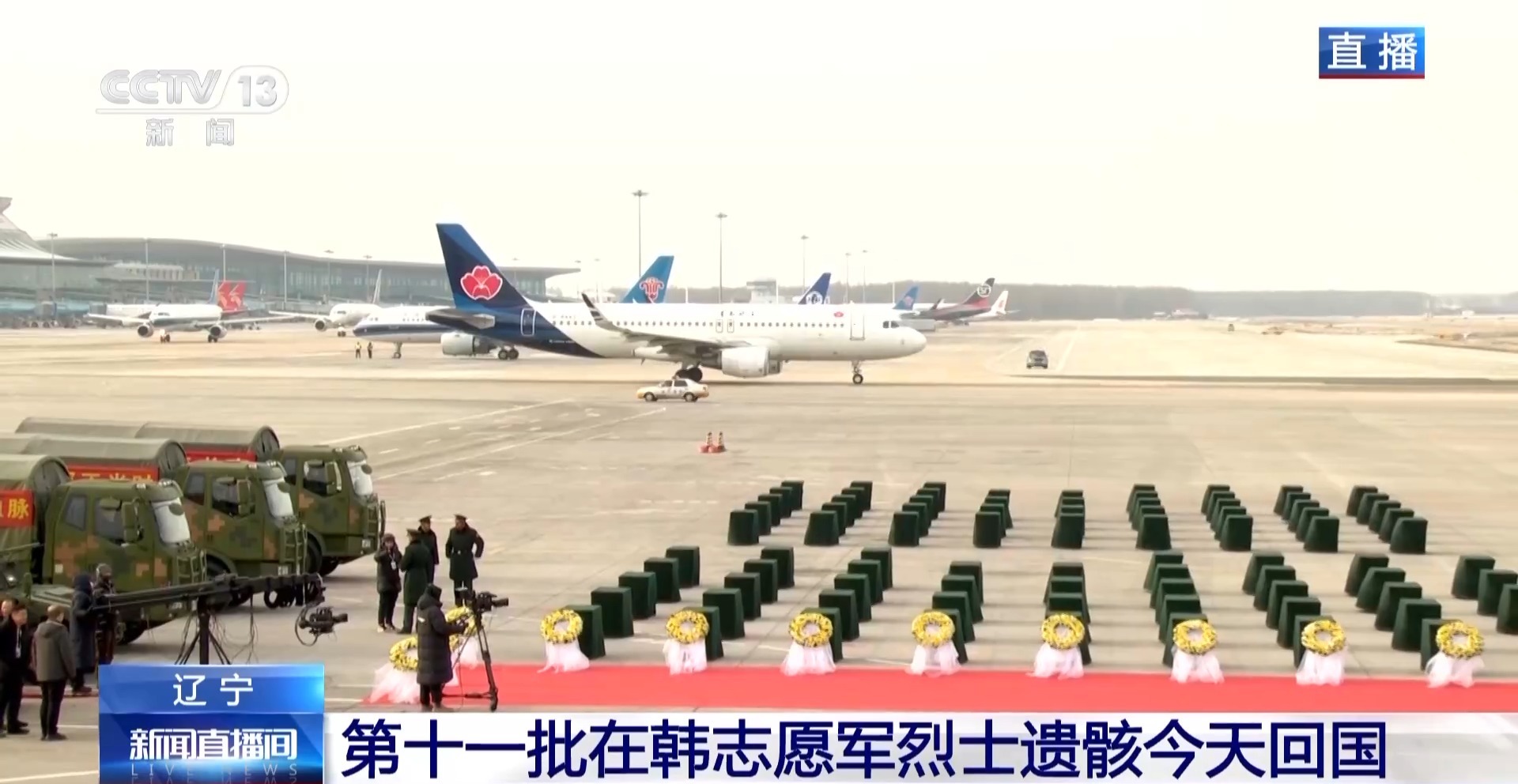 今天(28日),第十一批43位在韓中國人民志願軍烈士遺骸即將回到祖國,接運志願軍烈士遺骸回國的中國空軍運-20專機抵達後,將在瀋陽桃仙國際機場舉行迎回儀式。
