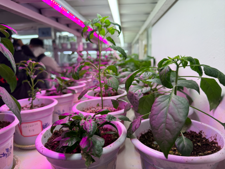 走進湘研種業的人工氣候室,模擬太陽光照的三色燈光,正映照着一排排辣椒幼苗,科研人員正在細緻地查看並記錄幼苗的生長情況。屋內,温度、濕度、光照等都可以經由電腦自由調節,為辣椒提供最佳的生長環境,辣椒的育種時間大幅縮短。