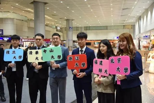 此次大陸高校師生應邀赴台,是對馬英九先生4月率台灣青年學生前往大陸高校交流的回訪。*團員來自清華大學、北京大學、復旦大學、中山大學、浙江大學、福建師範大學、北京體育大學等7所高校。*在桃園機場,訪問團受到台灣各界特別是青年學生熱烈歡迎,許多人提前幾小時就前來等候。