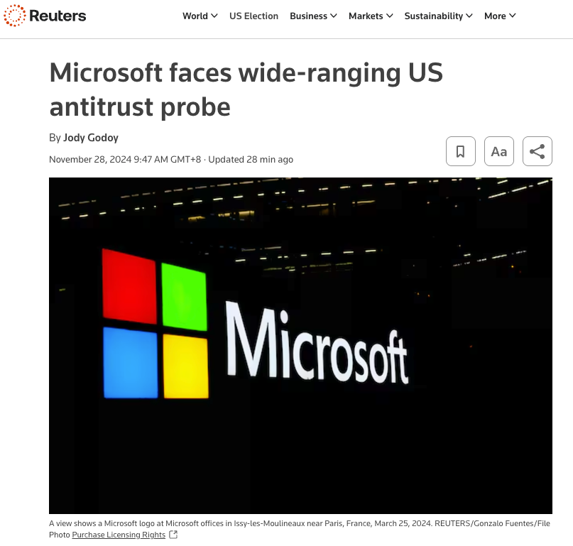 目前,微軟尚未對此次調查發表正式聲明。