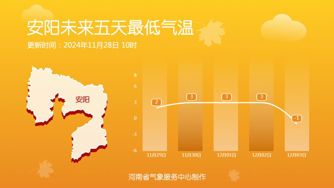 12月1日到2日,受冷空氣擴散影響,全省偏北風3到4級,北中部、西南部陣風6級左右。全省大部最高氣温較前期下降6到8度。