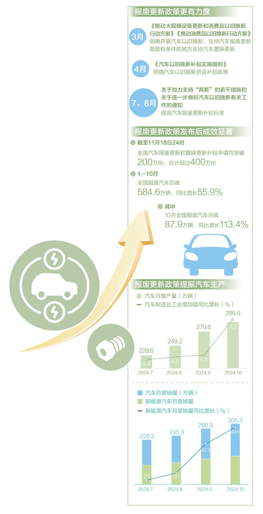 政策激發了消費者以舊換新熱情,也讓中再生這樣的報廢汽車回收拆解企業生產線更加忙碌。中再生報廢汽車事業部副經理王功獻介紹,截至11月上旬,中再生共收購報廢機動車1萬餘輛,與去年同期相比增長近七成。