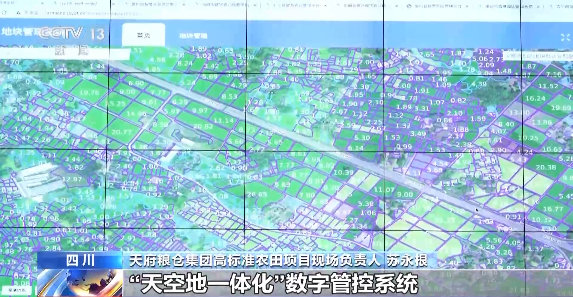 天府糧倉集團高標準農田項目現場負責人 蘇永根:“天眼通”就是我們眼前的這個“天空地一體化”數字管控系統,它可以通過應用算法和模型對農業種植户賦能。