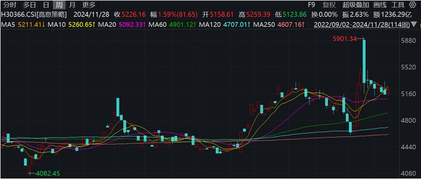 另據Wind數據顯示,截至11月27日,高息策略指數(H30366.CSI)的股息率為5.24%,優於滬深300和上證50的3%、3.77%,近3年以來該指數的股息率普遍保持在5%以上。