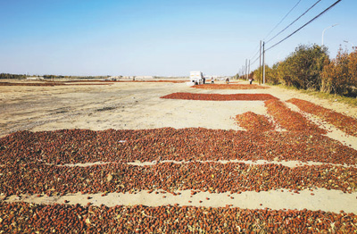 走進策勒縣策勒鄉阿日希村一家紅棗加工廠,村民正忙着清洗、烘乾、分揀和包裝紅棗。阿日希村紅棗種植面積超過6000畝,村民八成以上經濟收入來自紅棗種植。