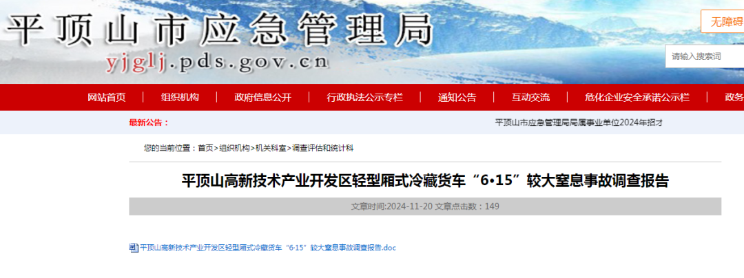 日前,平頂山市應急管理局公佈該起事故調查報告,經調查認定,平頂山高新技術產業開發區輕型廂式冷藏貨車“6·15”較大窒息事故是一起因輕型廂式冷藏貨車掛靠公司未落實企業主體責任,對掛靠車輛缺乏有效管理,*車輛駕駛人違法違規使用廂式冷藏貨車載人、人貨混裝運輸,屬地有關部門專業監管和行業管理失職缺位,地方黨委政府安全領導責任落實不到位而造成的較大生產安全責任事故*。