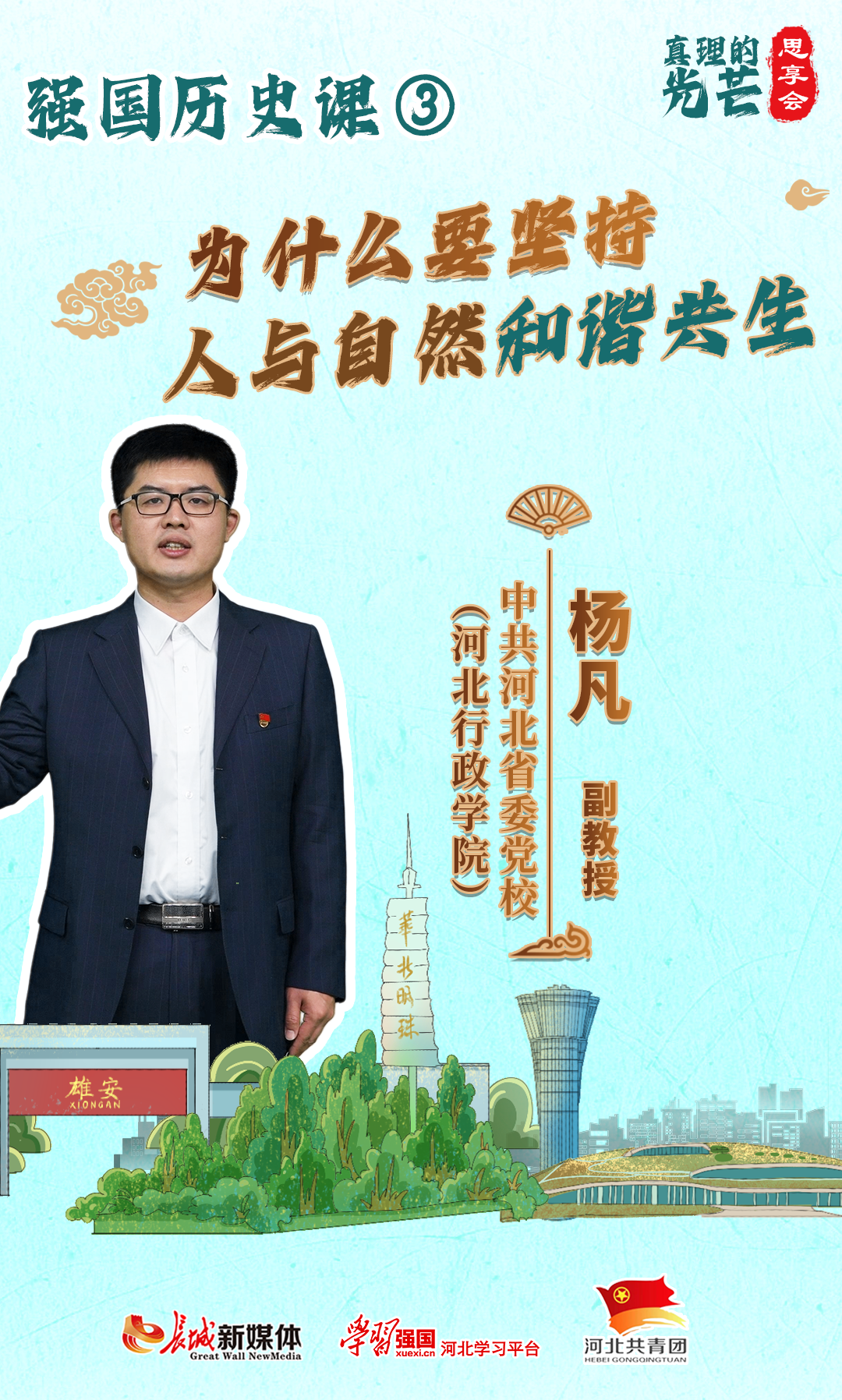 第三期節目由中共河北省委黨校(河北行政學院)社會和生態文明教研部副教授楊凡,講述“為什麼要堅持人與自然和諧共生”。