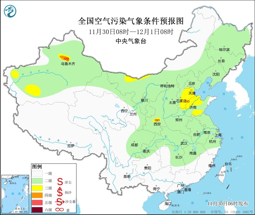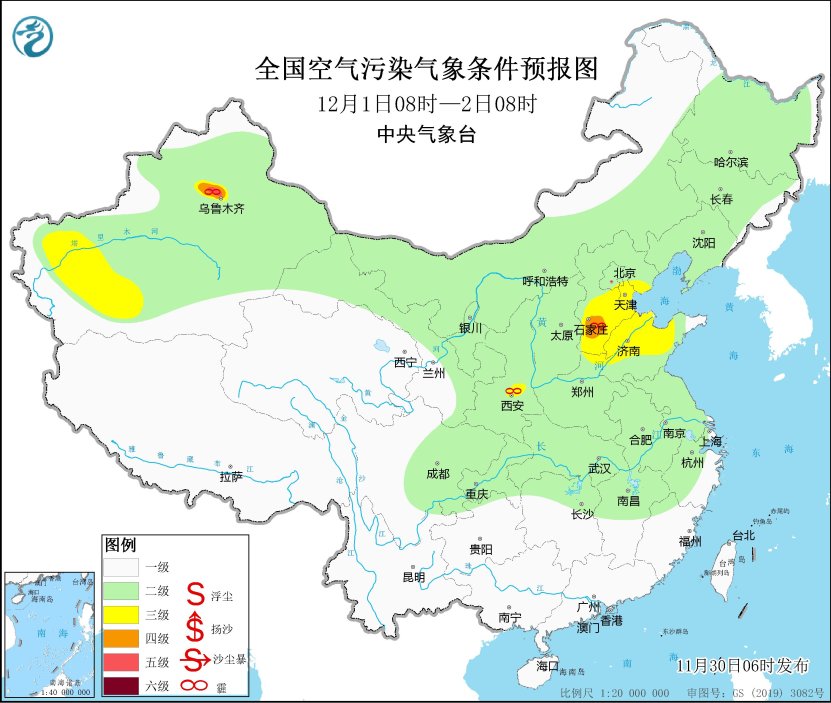 未來一週,冷空氣影響頻繁,全國大部地區大氣擴散條件較好。僅11月30日至12月1日,華北中南部等地大氣擴散條件一般,部分地區有輕度霾,局地有短時中度霾。