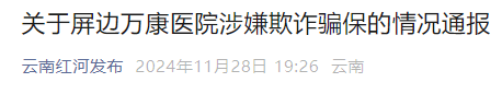 《關於屏邊萬康醫院涉嫌欺詐騙保的情況通報》