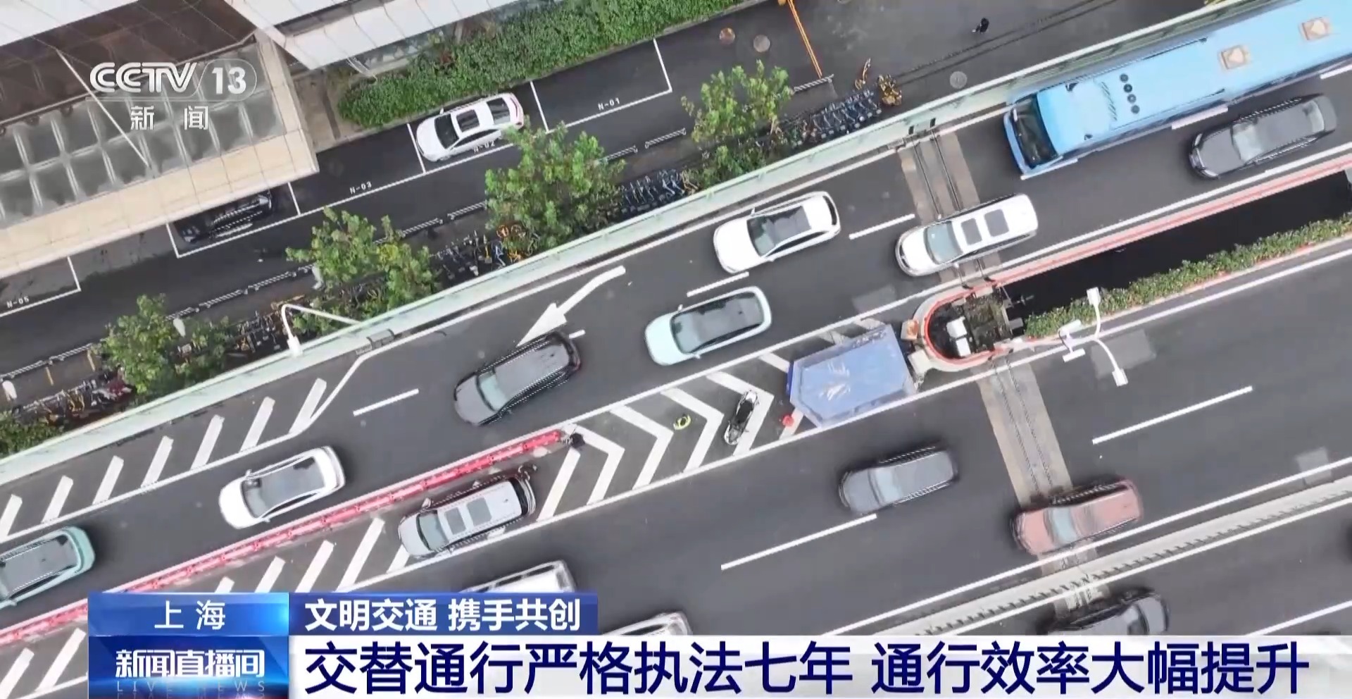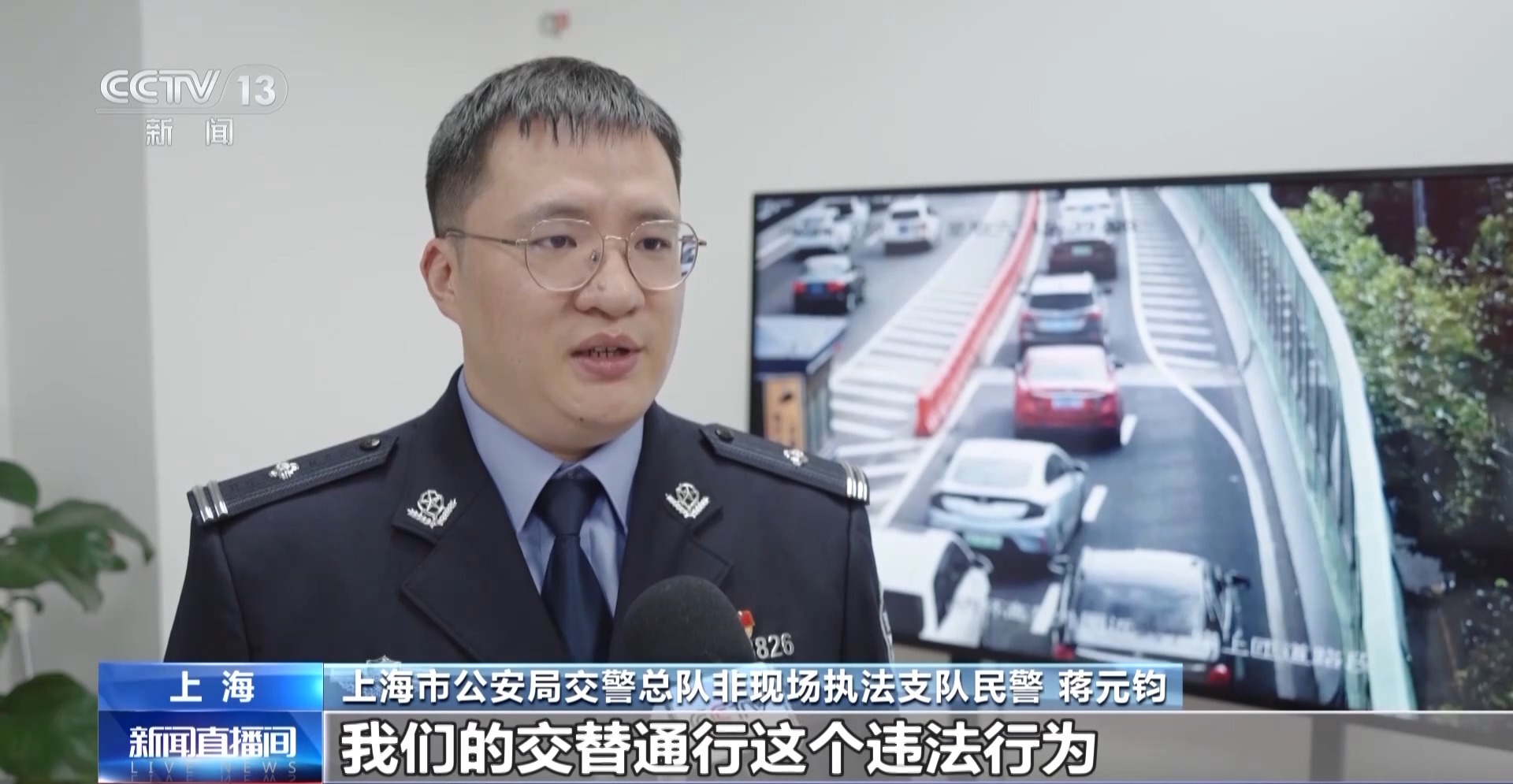 *上海市公安局交警總隊非現場執法支隊民警 蔣元鈞:*近年來,根據我們的統計,隨着機動車保有量越來越高,交替通行的違法行為反而是逐年下降的趨勢。跟2020年同期相比,2024年下降了50%左右。