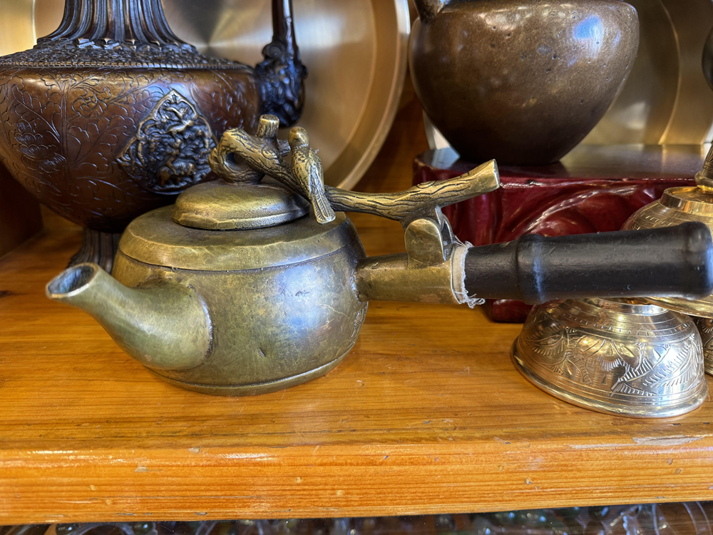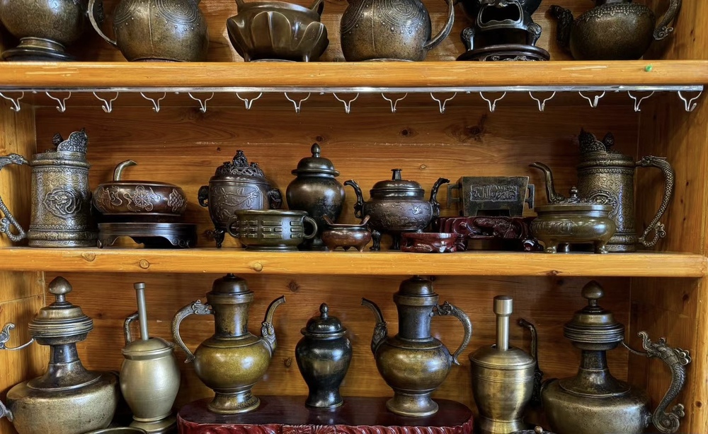 工藝品商户:這是茶壺,搭在火爐上面邊燙邊喝的,是純手工做的,屬於藏文化……