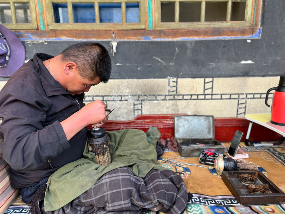 邊巴扎西正在製作銀器
