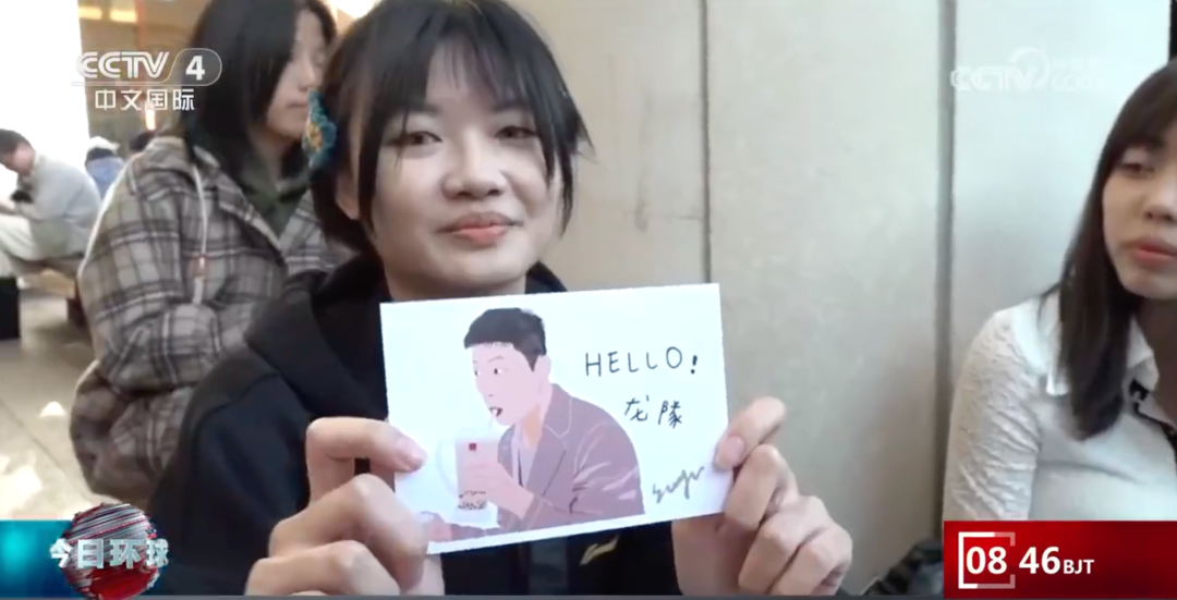 馬龍所到之處幾乎都有球迷跟隨,*在台灣也掀起了一陣“乒乓球熱”。*中國文化大學學生展示自己的畫説:“這是我自己畫的,就是他來台灣第一天喝奶茶的照片,我等下想要送給他。”