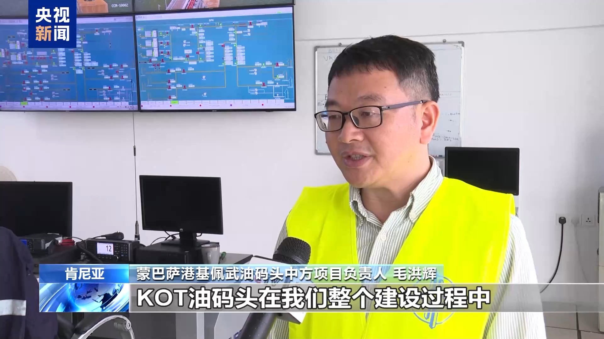 *蒙巴薩港基佩武油碼頭中方項目負責人 毛洪輝:*KOT油碼頭在整個建設過程中有幾點創新,第一點是採用了岸上預製,一次拖航,沉管安裝的海底管道安裝技術,這個在東非乃至世界都是首次應用的一個工藝。第二點,項目採用了大流量高精度的超聲波流量計,提高了計量的精度。第三點,大家也看到這裏,這個項目採用了PLC自動化監控系統,提高了管控的自動化程度,還有精度。