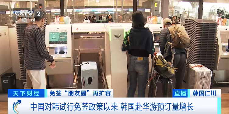 在韓國仁川國際機場一號航站樓的出發大廳,有不少韓國遊客利用週末休息時間來一場説走就走的中國旅行。儘管每年的11月都是韓國的旅遊淡季,對韓免籤政策帶動韓國赴華旅遊大幅增長。