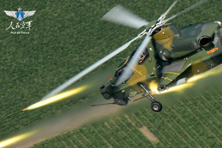 2017年7月4日,空軍航空兵某部直-10武裝直升機發射火箭彈對地攻擊。