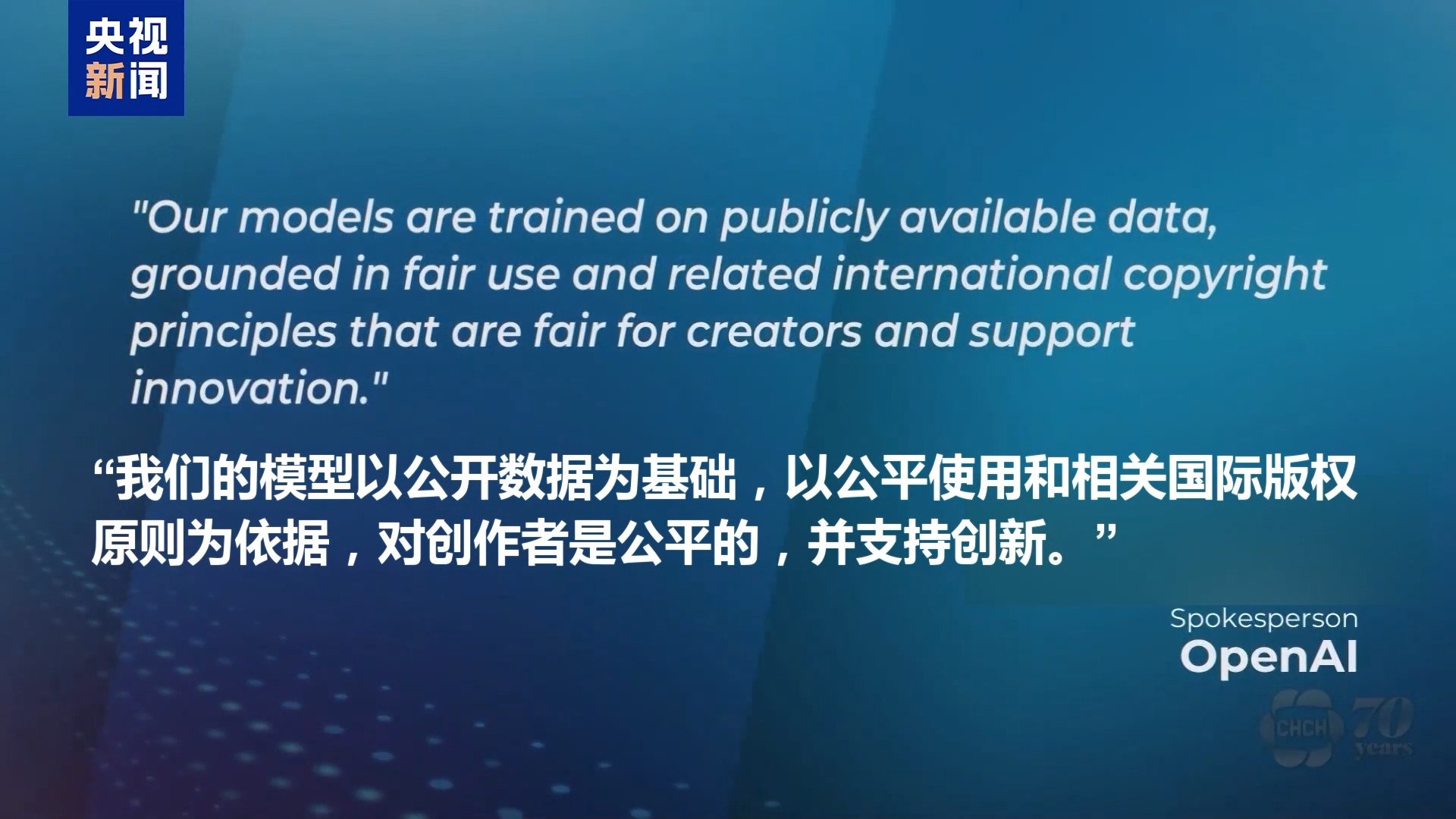 OpenAI否認這些媒體的指控,並發表聲明稱,“我們的模型以公開數據為基礎,以公平使用和相關國際版權原則為依據,對創作者是公平的,並支持創新。”