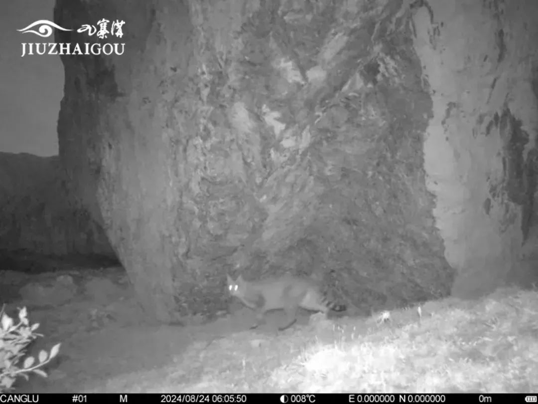 據九寨溝國家級自然保護區管理局披露,近期,九寨溝生物多樣性監測工作人員在整理回收的紅外相機照片時,驚喜地發現了國家一級重點保護野生動物——荒漠貓的身影。此為九寨溝國家級自然保護區新分佈物種,此前保護區有國家一級重點保護獸類7種(大熊貓、川金絲猴、牛羚、林麝、馬麝、豺、金貓),現增為8種。
