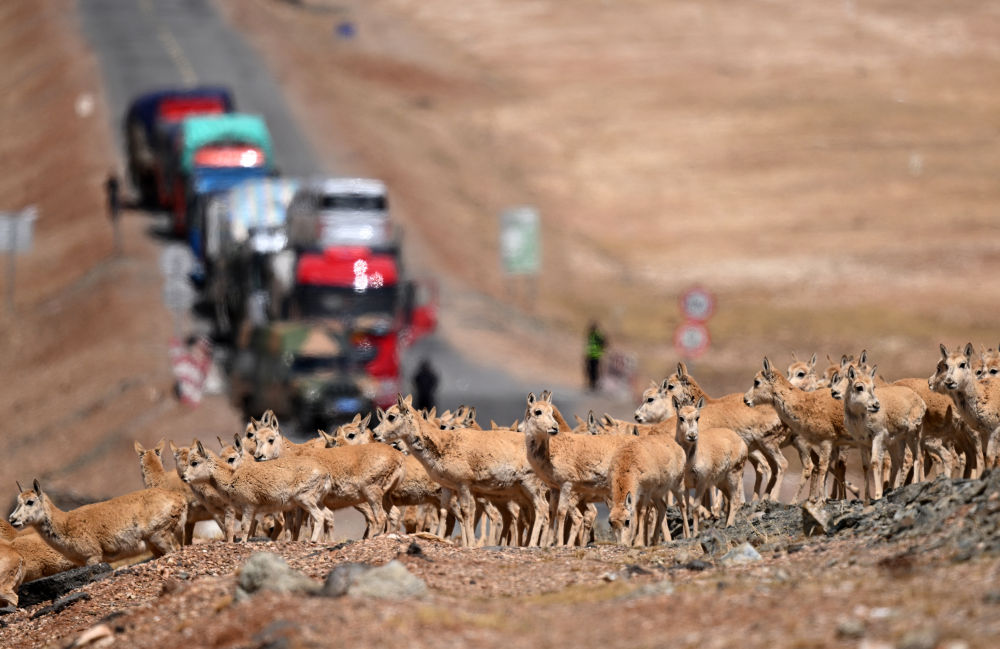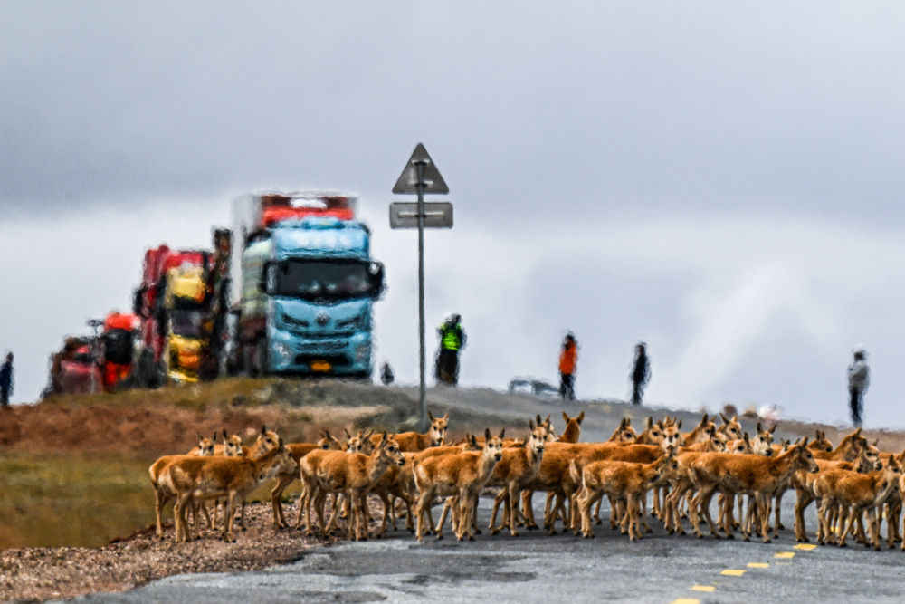 70年過去,青藏公路與可可西里這片土地早已“融為一體”。青藏公路3001、3002公里處,是可可西里藏羚羊遷徙的重要通道。每到藏羚羊遷徙產仔季,在可可西里工作人員的指揮下,來往車輛會在這裏自覺排成長龍,在遠處默默等待,為“高原精靈”讓路。