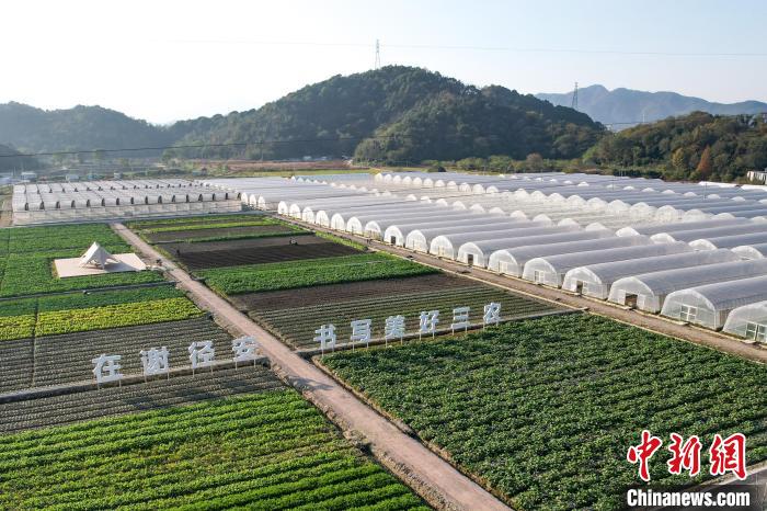 12月2日,航拍謝徑安·傳化農創村的區域特色產業基地。地處浙江省杭州市蕭山區浦陽鎮的謝徑安·傳化農創村,由謝家、徑遊、安山三村組成,常住人口1.2萬人,近年來,浙江民營企業傳化集團在該村發展科技助農特色產業,推動鄉村發展致富。(無人機照片)中新社記者 張祥毅 攝
