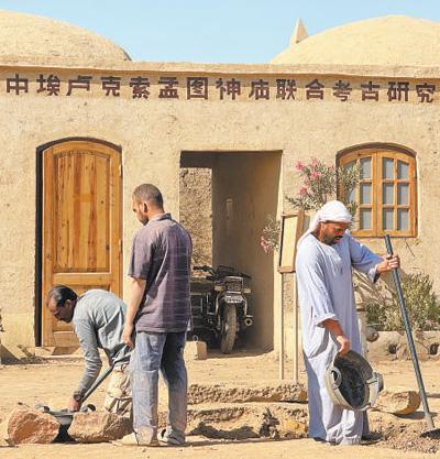 中埃(及)盧克索孟圖神廟聯合考古項目在考古發掘、文物保護等方面,不斷統一技術標準,互學互鑑理念方法,推動神廟實地景象和出土文物重現於世人面前。圖為工作人員在項目現場進行發掘清理工作。