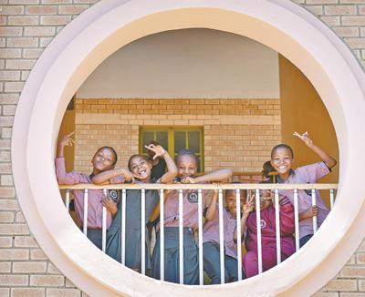 位於博茨瓦納南部的莫帕尼小學是中國援建的現代化學校,當地兒童的教育條件因此得到改善。圖為莫帕尼小學課間休息的學生們。