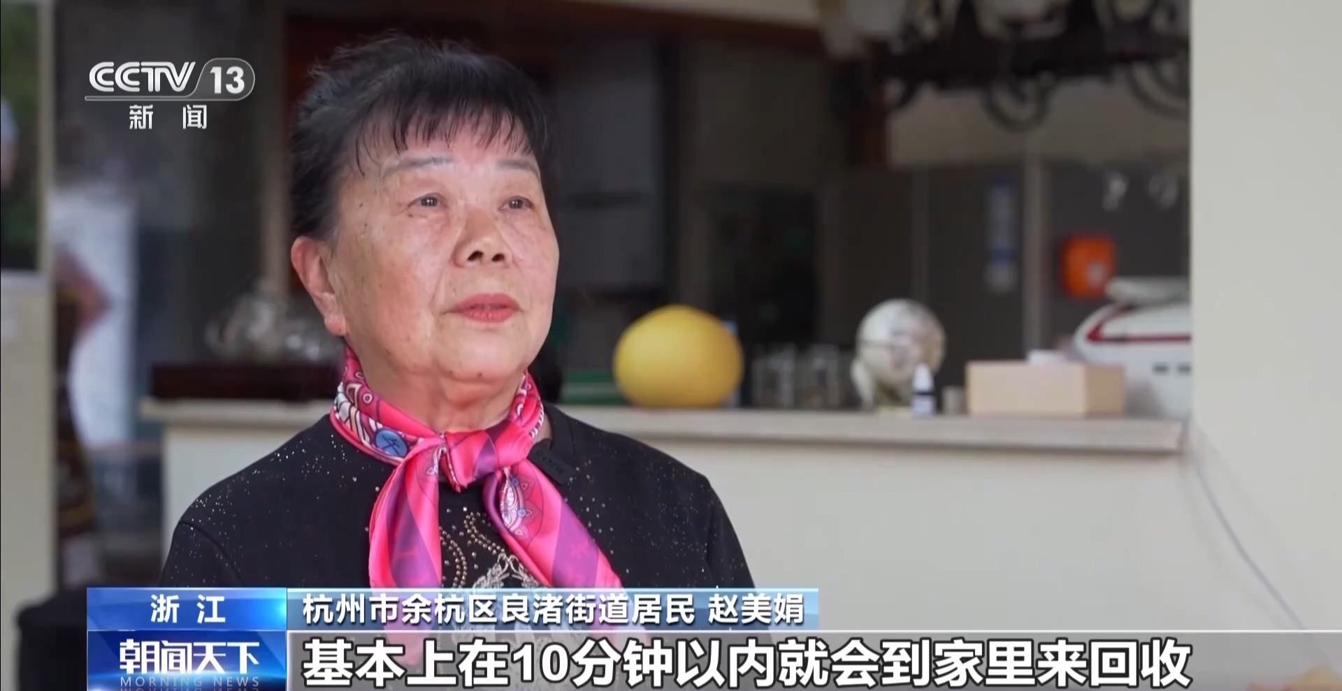 *杭州市餘杭區良渚街道居民 趙美娟:*基本上在10分鐘以內就會到家裏來回收,操作簡單的,老年人也都會。