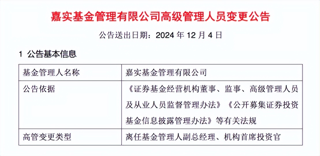 【環球網財經綜合報道】12月3日晚間,管理規模龐大的嘉實基金髮布重要公告,宣佈公司副總經理張峯及機構首席投資官郭傑因工作調整原因,於2024年12月2日正式離任。此次高管變動已經過嘉實基金管理有限公司第九屆董事會的審議,並已按照相關法規進行了備案。