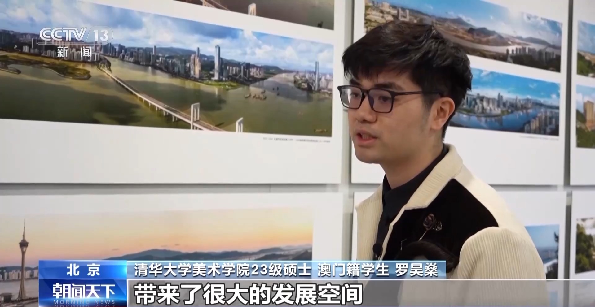*清華大學美術學院23級碩士 澳門籍學生 羅昊燊:*我家就在老城區這塊,從小在這裏長大,這麼多年還保留了澳門原來的文化色彩。主要是發展周邊的一些區域。我也看着周圍從荒蕪空地,發展成很多高樓大廈。它的建設為我們年輕人帶來了很大的發展空間。