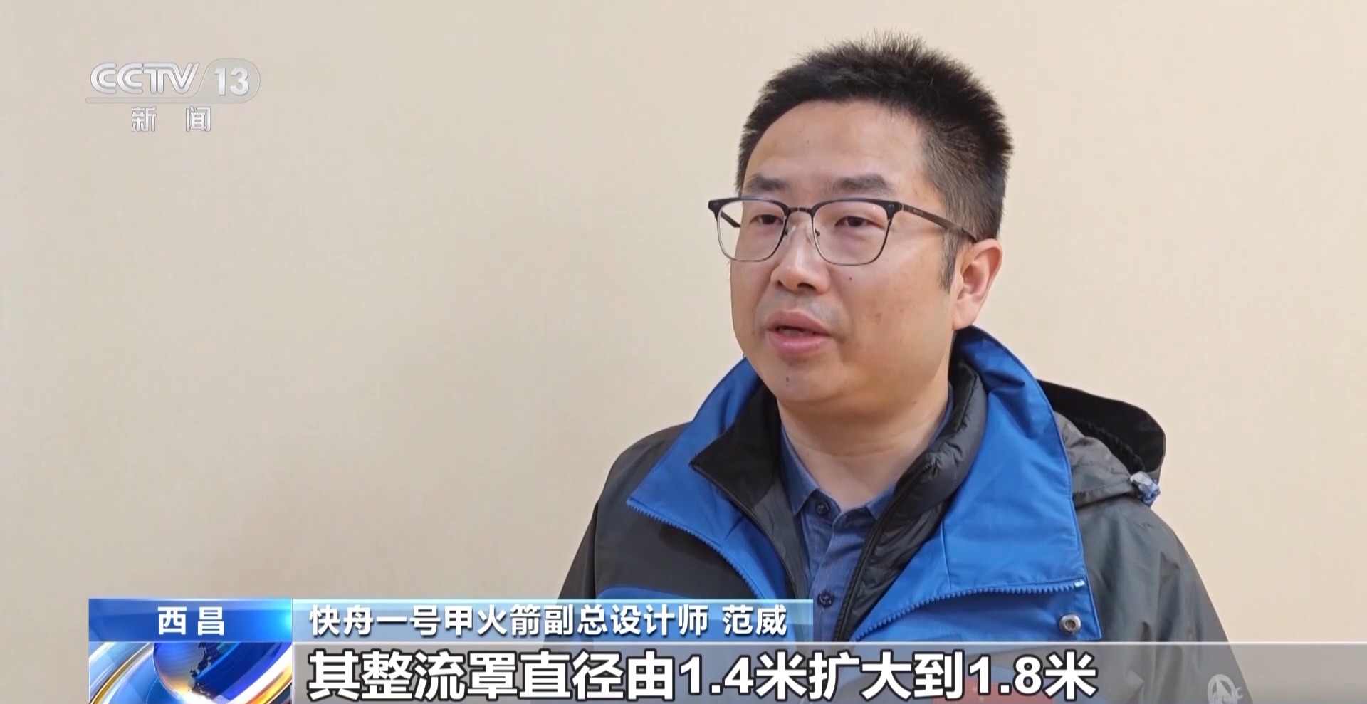 *快舟一號甲火箭副總設計師 範威:*其整流罩直徑由1.4米擴大到1.8米,近地軌道運載能力由300公斤提升至450公斤。同時火箭還採用了高載荷比優化,去任務化、落區控制和在線變參等技術,火箭的可靠性和使用性等方面實現了大幅提升。
