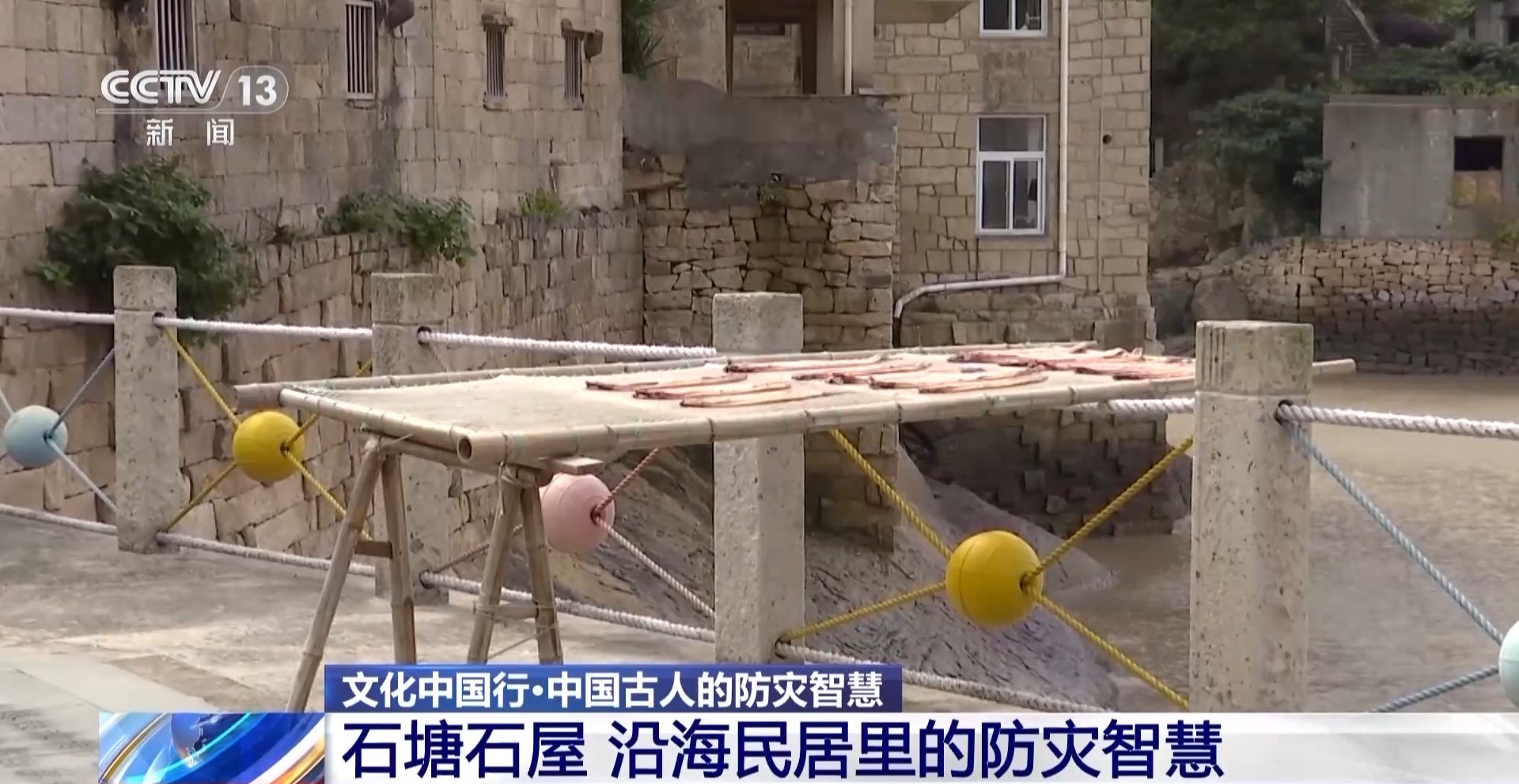 *温嶺市文化和廣電旅遊體育局文化遺產保護科 張淑凝:*這個民居是我們石塘特有的建築,就是石屋,它最大的特點就是外牆全是用塊石砌築的,都是花崗岩,在防禦颱風的時候非常地有優勢,因為它比較堅固。像利奇馬台風都超強颱風17級的,它都巋然不動。