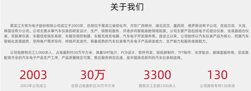 黑龍江天有為電子股份有限公司主要從事汽車儀表的研發設計、生產、銷售和服務,並逐步向智能座艙領域拓展,客户主要覆蓋現代汽車集團、長安汽車、奇瑞集團。該公司正在申請於A股主板上市,保薦機構為中信建投證券。