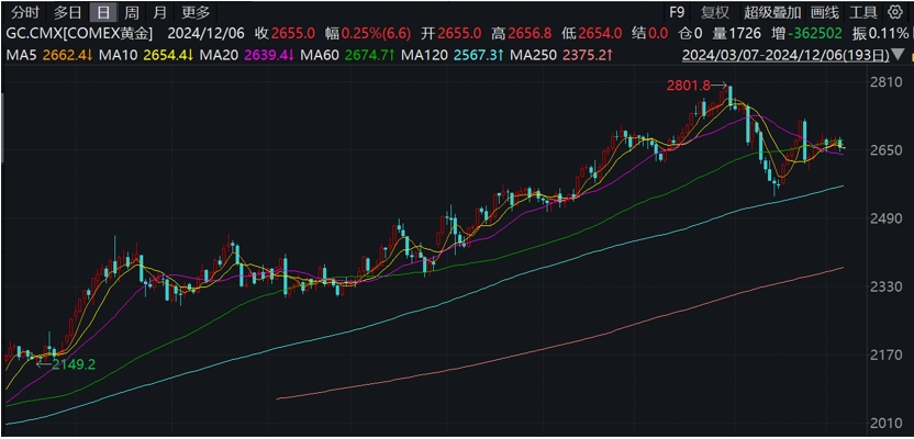 消息面上,美國芝加哥商業交易所(CME)集團為滿足散户投資者在金價迭創新高之際的旺盛需求,將從2025年1月開始提供1盎司的黃金期貨合約。CME聲明稱,該期貨合約將從1月13日開始上市,不過仍需等待監管部門批准。