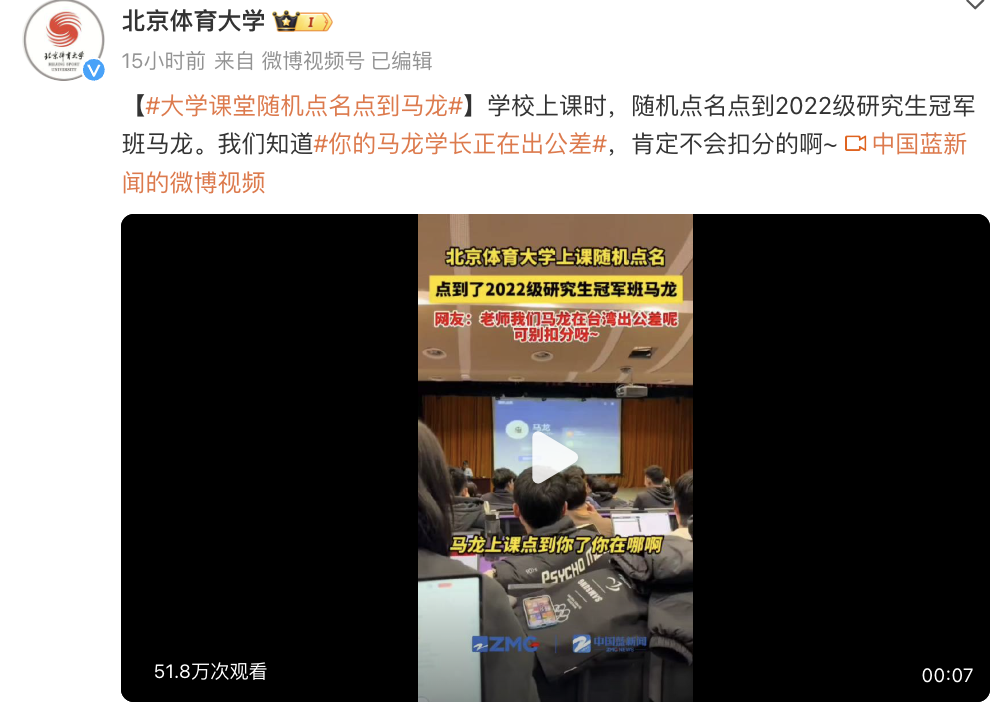一則“北體上課點名”的視頻