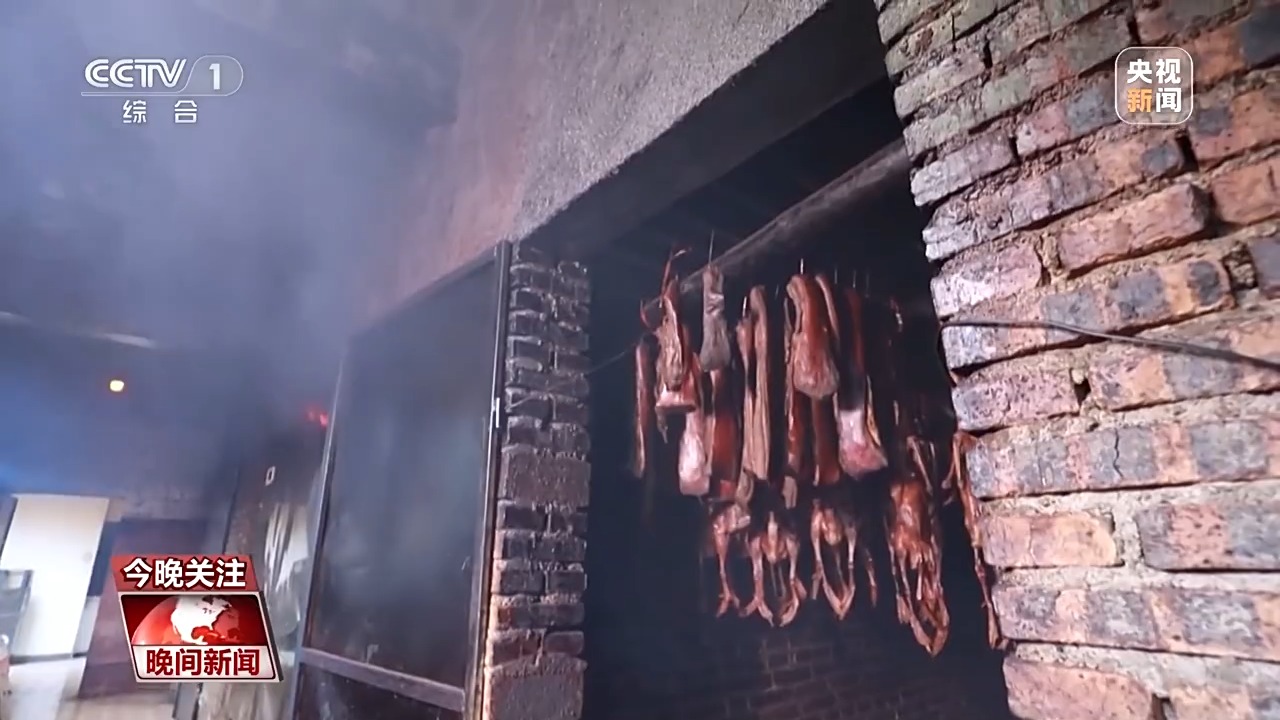而在湖南懷化的羅子山瑤族鄉,當地的村民們,正在製作今年的第一批臘味。當地有“大雪到臘肉灶”的説法,説的是農家臘肉是通過火塘慢煙燻制。