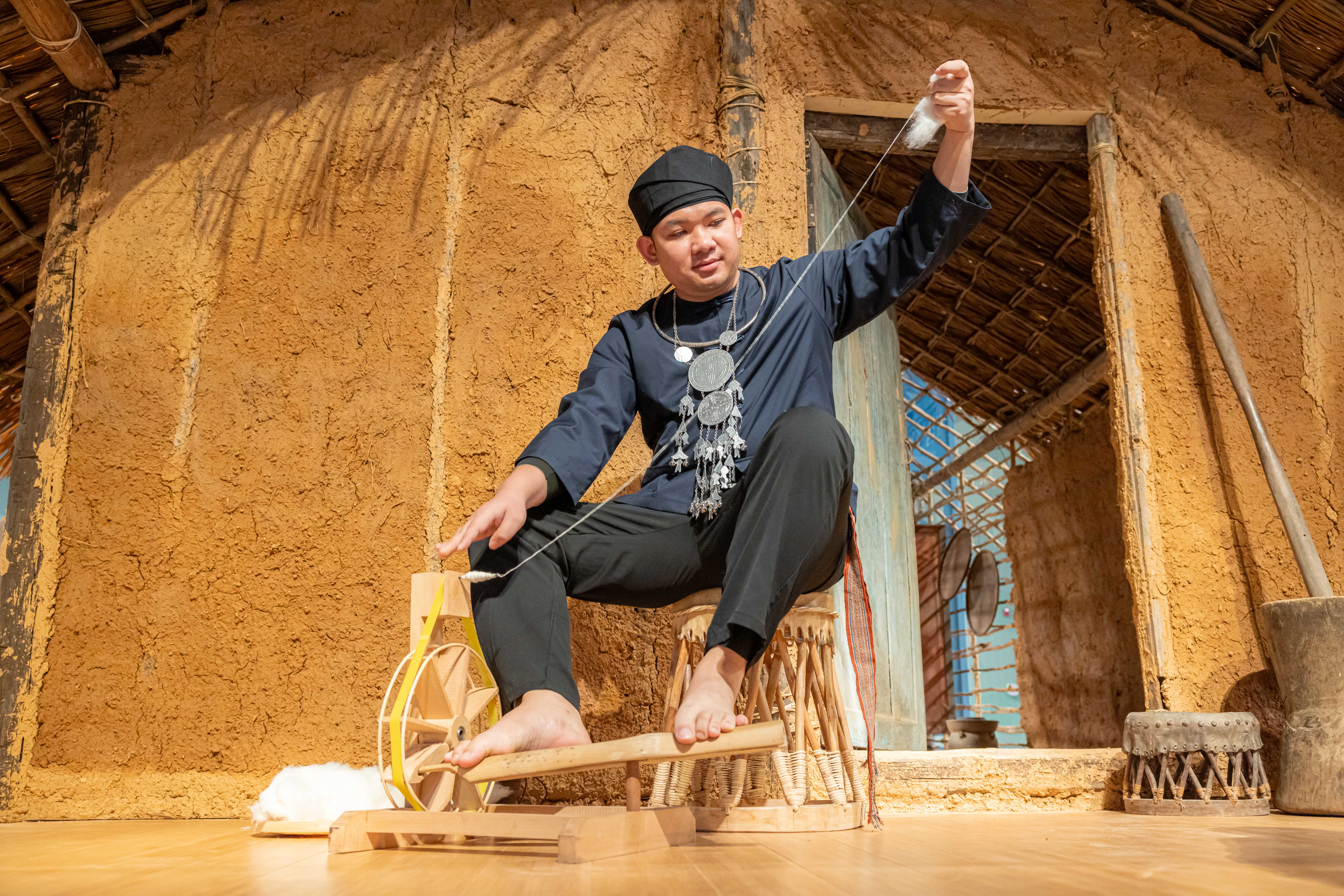 黎族腰織機、黎族木製軋棉機、繞線器、彈棉弓……展覽展出了黎錦紡、染、織、繡各流程的工具,把黎族傳統紡染織繡技藝細細“掰開”,向觀眾展示一朵棉花如何變成一塊黎錦的全流程,體現黎族人民的智慧與匠心。