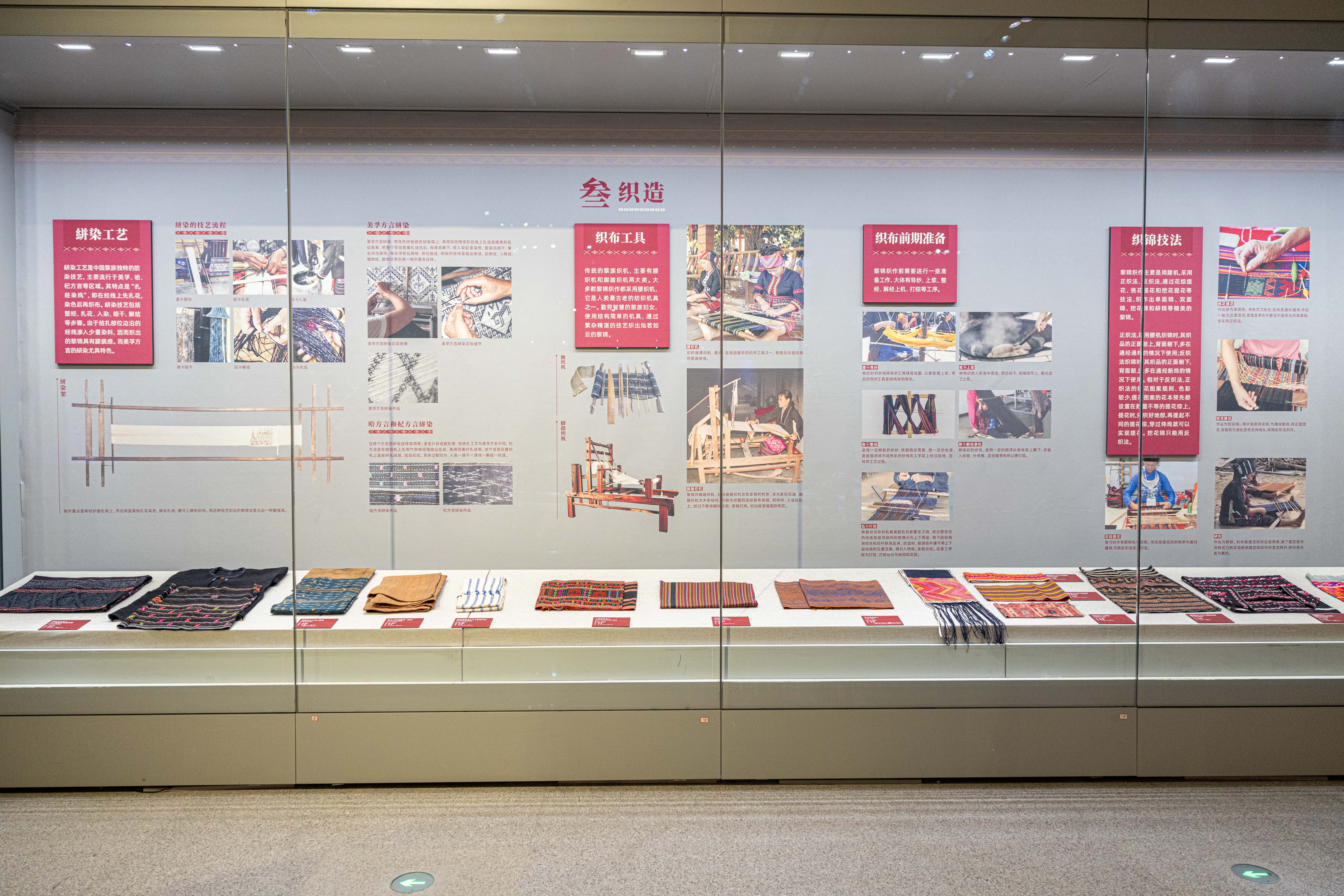 當天,由中國非物質文化遺產館、海南省旅遊和文化廣電體育廳聯合主辦的“黎華錦簇——黎族傳統紡染織繡技藝保護成就展”開展,全方位展示黎族傳統紡染織繡技藝的歷史脈絡、技藝特點、保護實踐和創新發展。