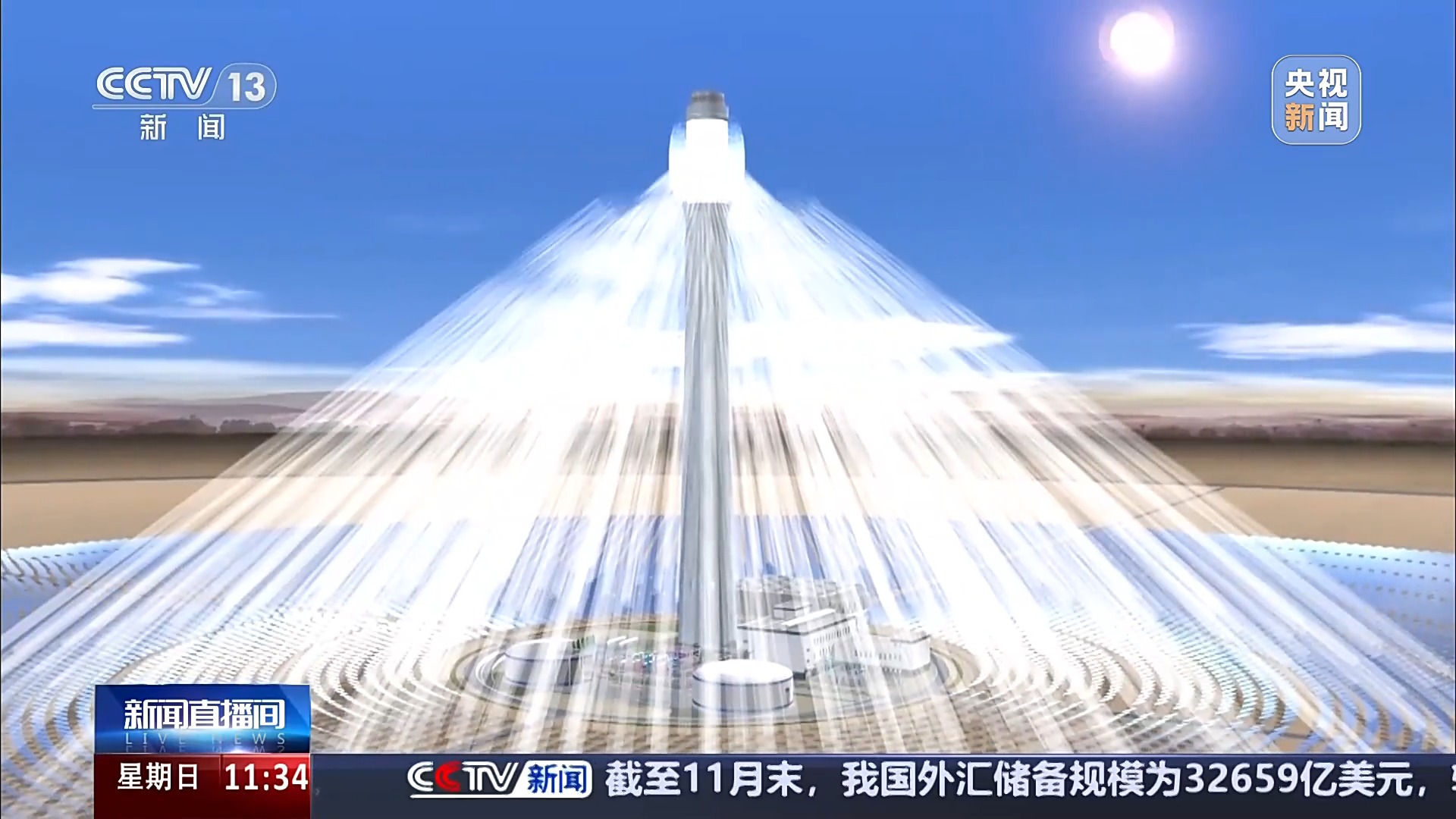 另外,這十面三角鏡其實角度各不相同,整體組成了一個略有凹陷的凹面鏡,可以反射十道光。也就是説,當所有定日鏡啓動時,會有超過十萬道光匯聚到吸熱器上,形成一萬多個光點。