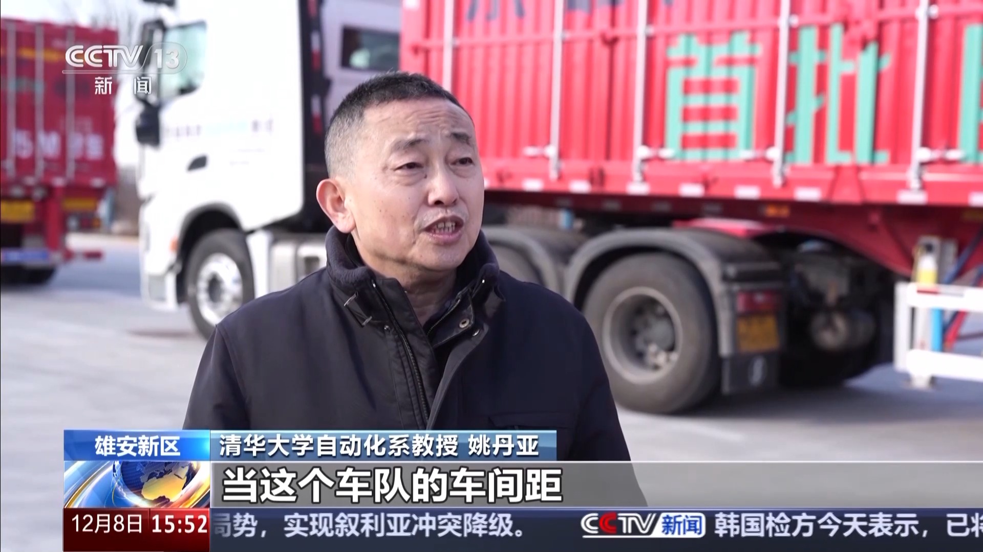 清華大學自動化系教授 姚丹亞:車隊最大的好處就是當這個車隊的車間距縮短到一定程度的時候,它對後車的節油是非常顯著的,我們控制在10米間距,後車的節油能到5%到10%。然後如果能把駕駛員再省下來,實際上就20%到30%的這樣一個成本的降低。