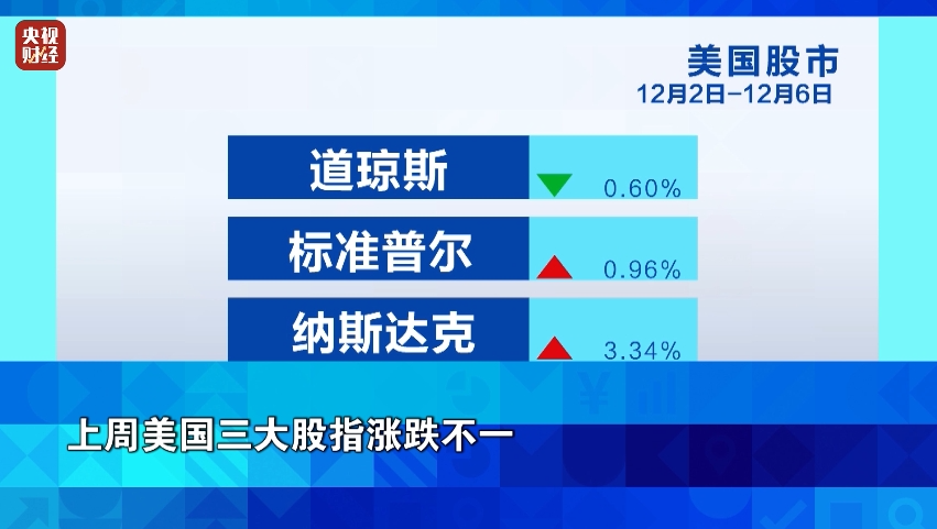 上週,美國11月份製造業採購經理人指數(PMI)繼續陷於萎縮區間,當月非製造業PMI低於預期,顯示出美國經濟增長放緩的跡象,引發投資者減持週期股,與實體經濟密切相關的道指上週下跌。紐約股市三大股指上週漲跌不一 ,其中,道指下跌0.60%,標普500指數上漲0.96%,納指上漲3.34%。