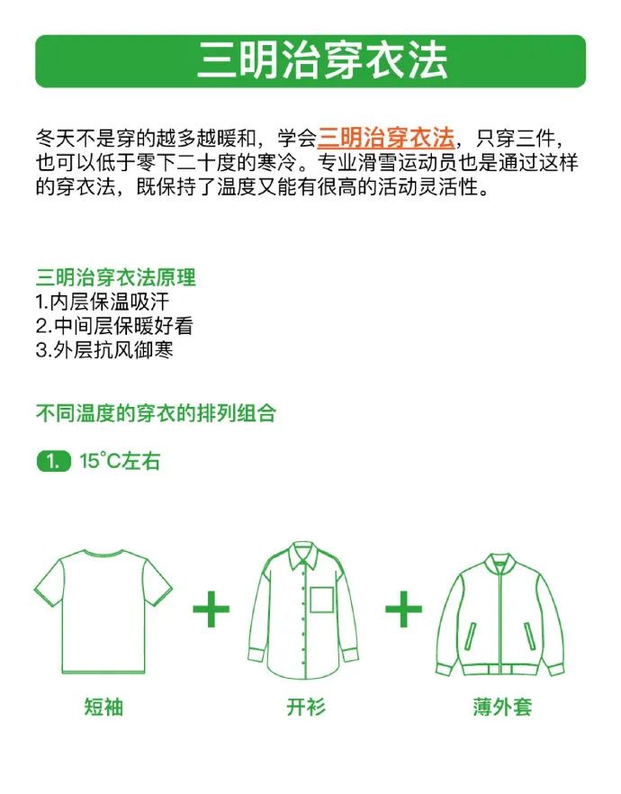 天氣寒冷的時候,為了保暖,大家會不會穿得裏三層外三層?“三明治”穿衣法瞭解一下,以後不用再裹成球啦!