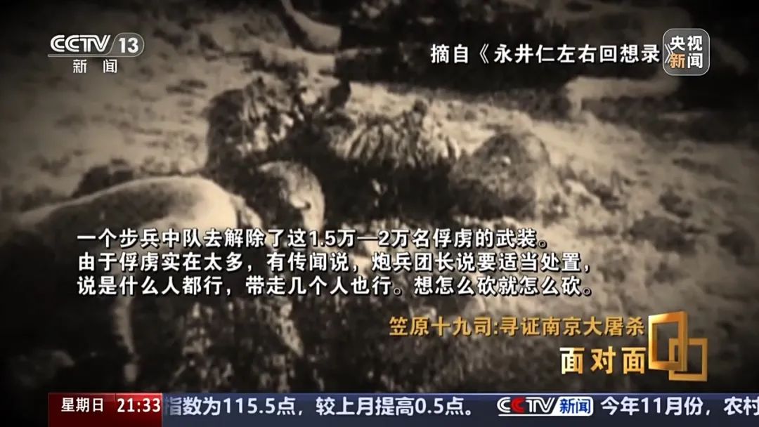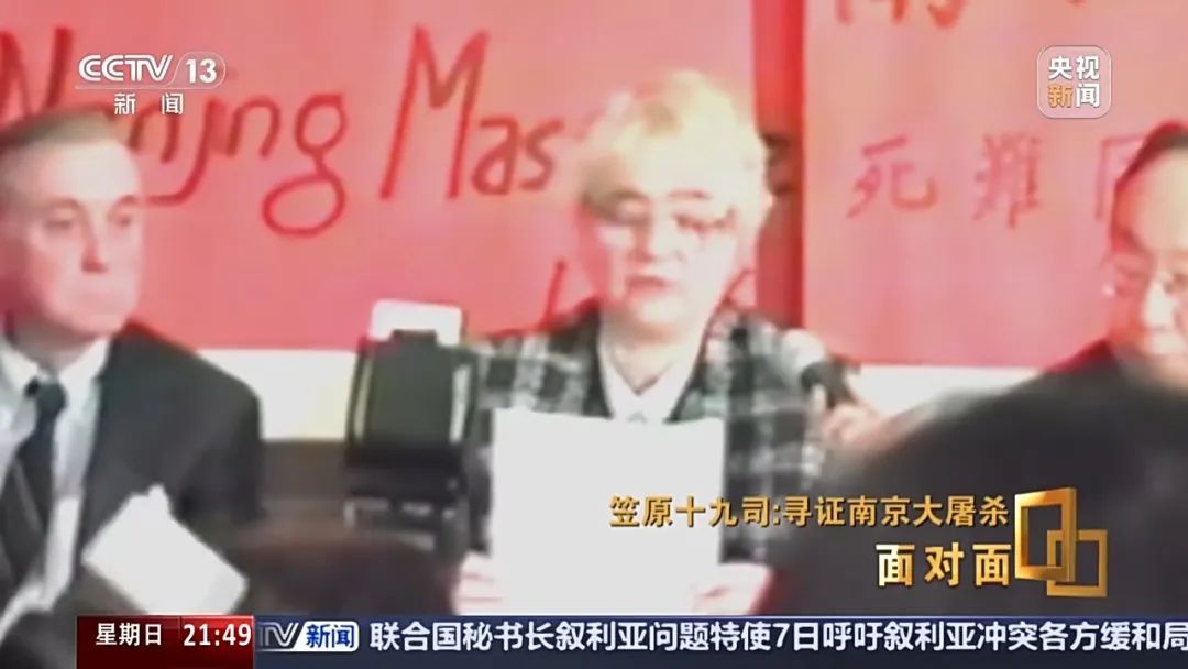 *笠原十九司:*這個老太太在南京大屠殺中被強姦了,她來到我們面前,流着淚,講述了自己遭受的迫害,對我來説真的是衝擊(巨大),以前完全不知道日本軍在中國做了什麼。