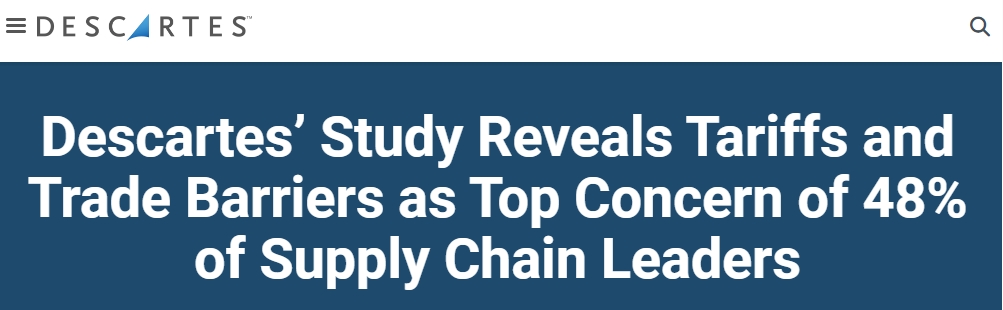 調查顯示,48%的受訪者認為關税和貿易壁壘上升是他們最擔心的問題,緊隨其後的是供應鏈中斷(45%)和地緣政治不穩定(41%)。此外,無論所在公司規模大小,受訪者都將關税和貿易壁壘列為當前面臨的首要問題。這項報告共調查了978名來自歐洲、北美、南美和亞太地區主要貿易國的供應鏈領域領導者。