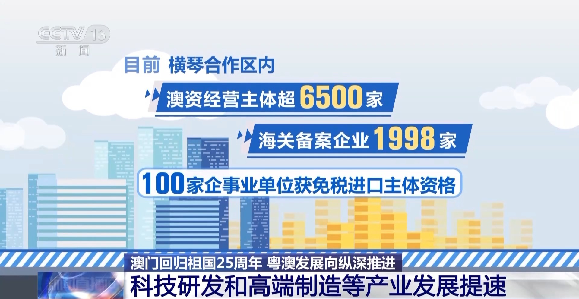 目前,橫琴合作區內澳資經營主體超6500家、海關備案企業1998家,100家企事業單位獲免税進口主體資格,合作區大力發展的科技研發和高端製造等“四新”產業發展提速增效,服務澳門經濟適度多元發展的效果加速顯現。