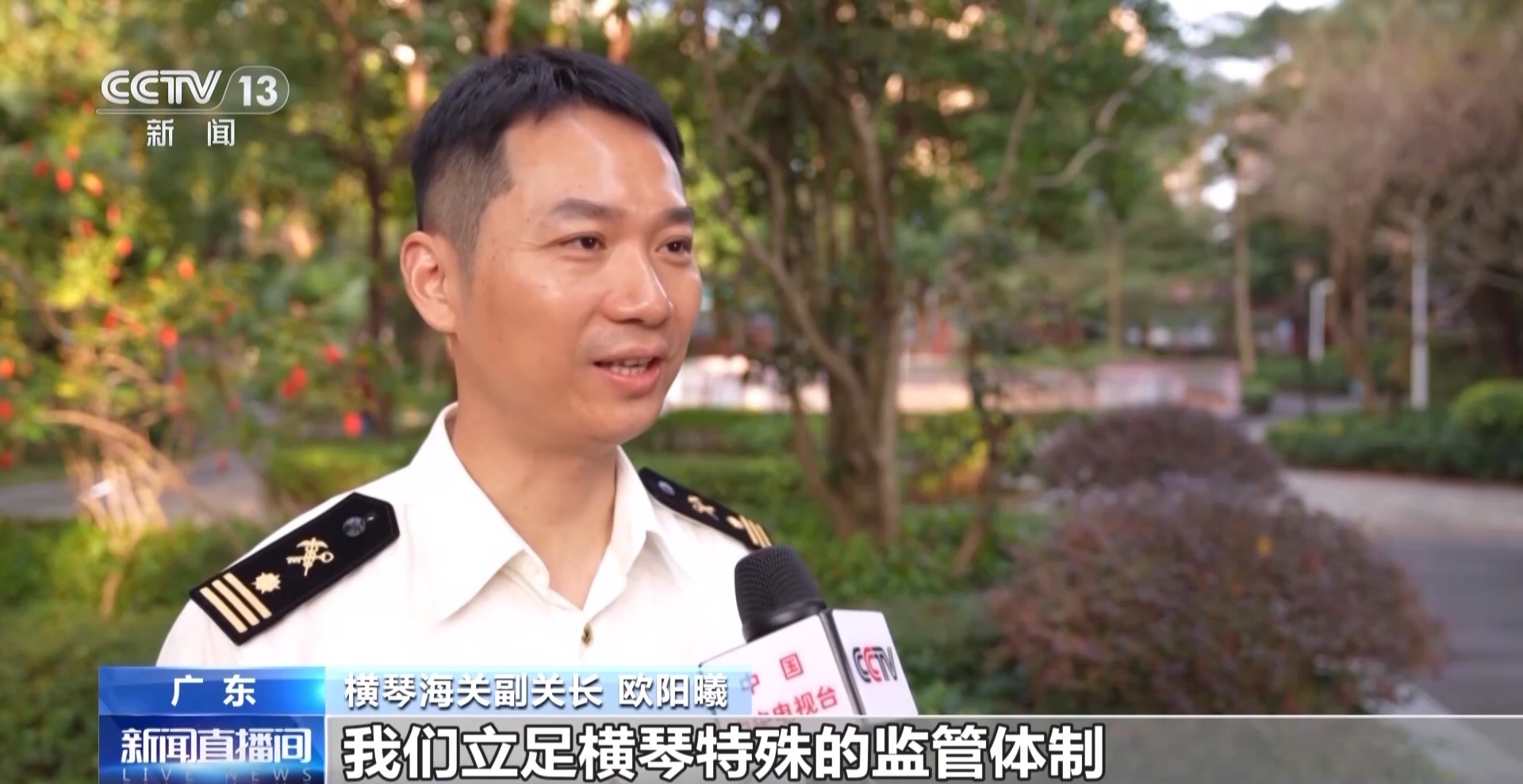 *橫琴海關副關長 歐陽曦:*我們立足橫琴特殊的監管體制,創新了分類、風險、信用、協同、智慧“五維一體”的監管模式,全力打造分線管理的海關監管制度樣板間,不斷推進琴澳的規則銜接機制對接。我們與澳門方面實施了15個跨境合作機制,在人員的衞生檢疫推行“合作查驗,一次放行”、實施了“粵澳客貨車聯合一站式”通關、創新貨物簡化申報,申報要素最大壓縮60%,不斷激發區域發展活力。