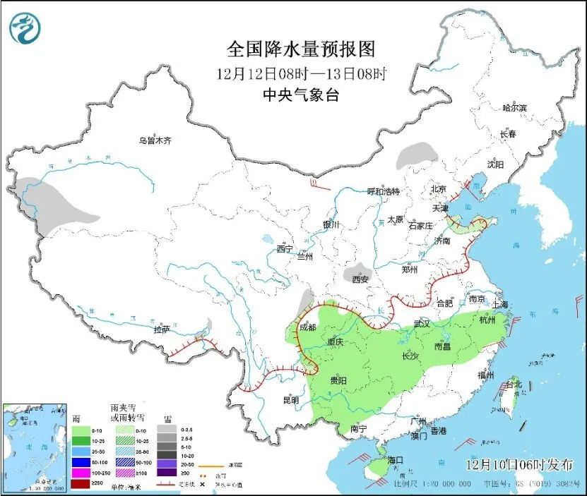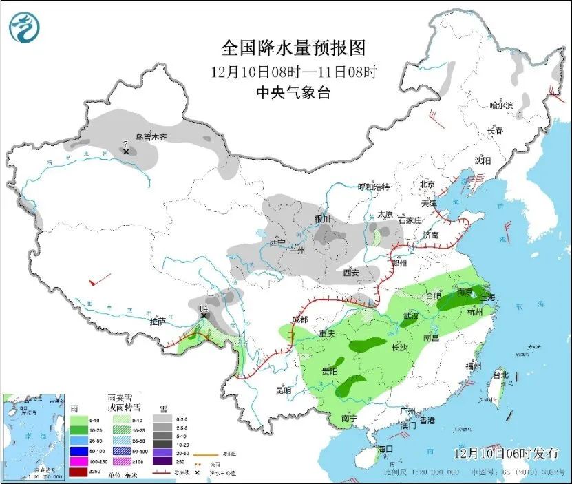 中央氣象台預計,明天,新疆東部和南部、西北地區東北部、甘肅河西和南部、西藏西部等地部分地區有小到中雪或雨夾雪。西南地區東部、江南、江淮南部、華南中西部、海南島、台灣島北部和東部等地部分地區有小到中雨。