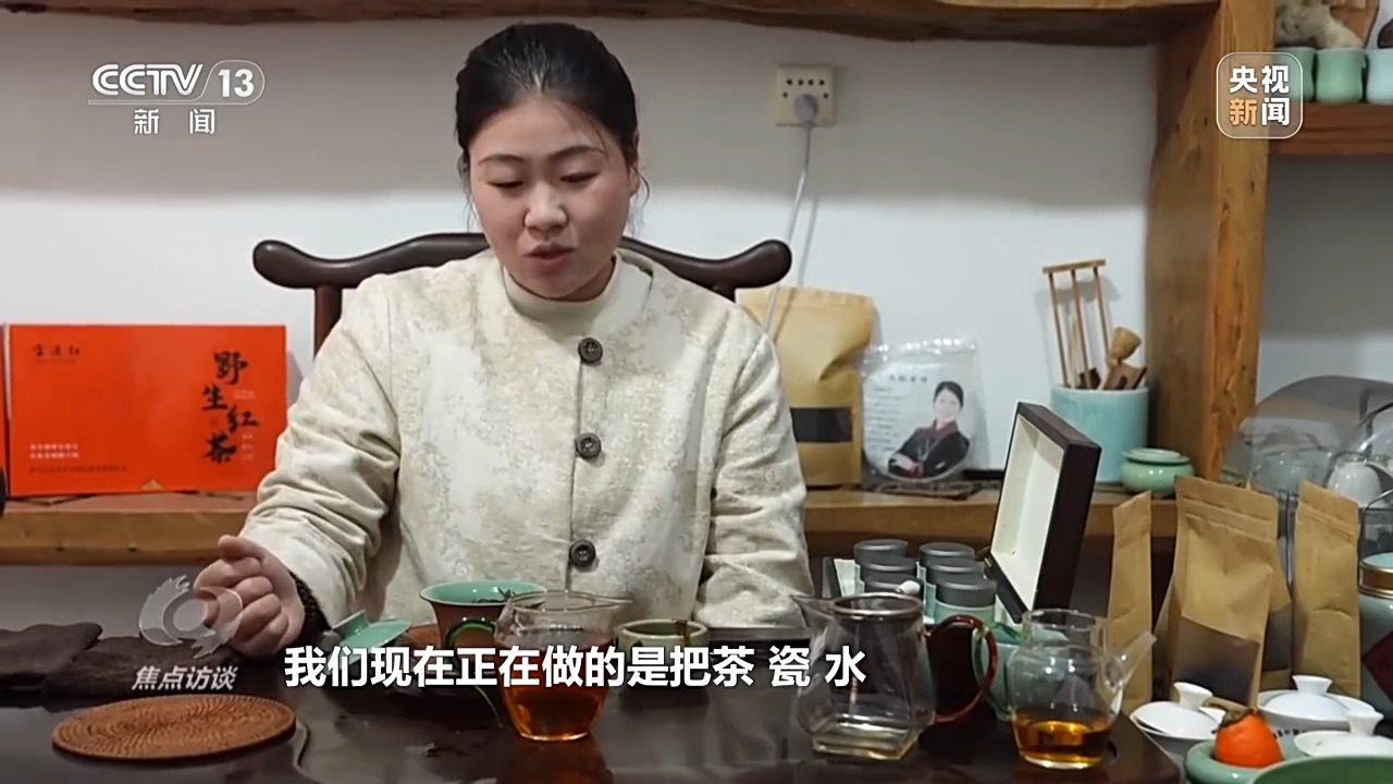 *浙江省龍泉市溪頭村村民 吳曉雪:*茶是當地的高山野生紅茶,水是當地的礦泉飲用水,瓷是龍泉青瓷,我們現在正在做的是把茶、瓷、水一起打包出售給客户。