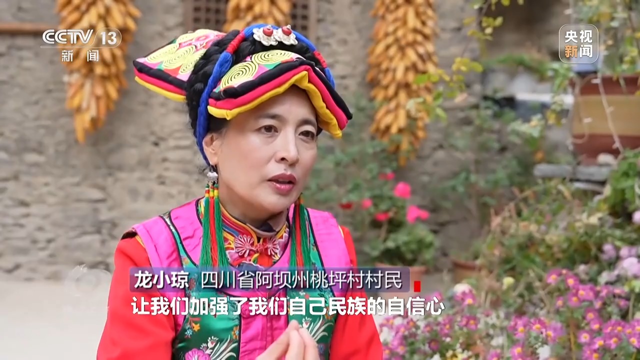 *四川省阿壩州桃坪村村民 龍小瓊:*其實也就是關注的目光,讓我們加強了我們自己民族的自信心、自豪感。我們每個人都在挖掘,都在問自己的老人還有什麼傳統文化,現在,自己都發自內心想再去深究自己這個民族的文化。